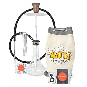 WattaKeeper Shisha Set: Wasserpfeife Komplettset Watta „18+“ Edelstahl, Glasbowl, Köpfe, Mundstück, Schläuche, Kohlezange, Knickschutzfeder, Dichtungsset, Hygienemundstücke WattaKeeper (WAT19P67)