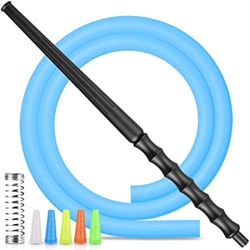 DFESKAH Shisha Schlauch mit Mundstück Glas, Wasserpfeife Glasmundstück Set mit 150cm Schwarz Matt Silikonschlauch…