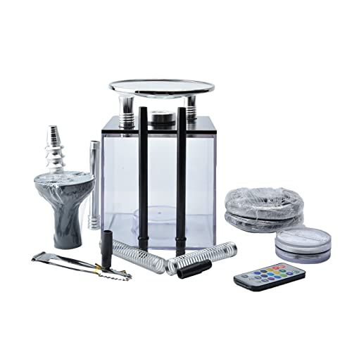 ★【Bunte Lichter, schönes Aussehen】 Der Boden unserer Shisha ist mit einem ferngesteuerten LED-Licht ausgestattet, das im Inneren des transparenten Würfels gut sichtbar ist und eine Vielzahl von brillanten Farben ausstrahlen kann.