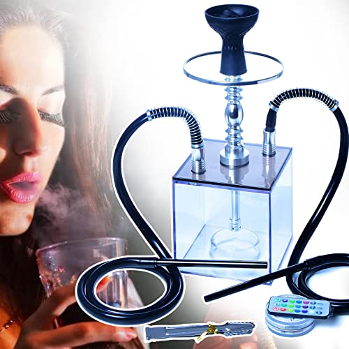 ★【Bunte Lichter, schönes Aussehen】 Der Boden unserer Shisha ist mit einem ferngesteuerten LED-Licht ausgestattet, das im Inneren des transparenten Würfels gut sichtbar ist und eine Vielzahl von brillanten Farben ausstrahlen kann.