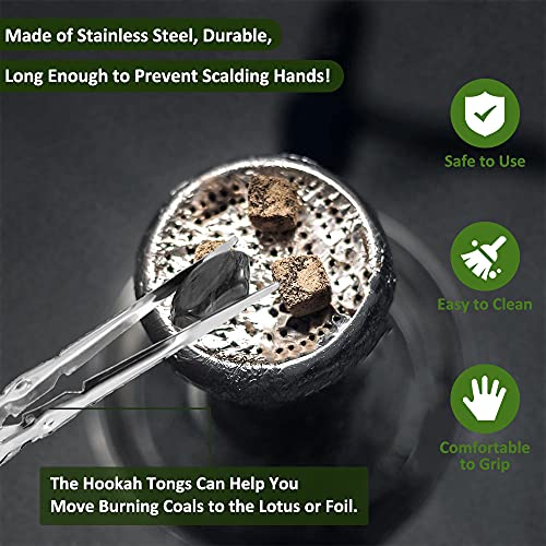 [ Zange für Shisha – Qualitätsmaterial ]: —— Dieser besteht aus hochwertigem Edelstahl, ist langlebig, leicht und leicht zu reinigen. Lange und robuste Clips reichen aus, um sicherzustellen, dass heiße Kohlen nicht zu nahe kommen. Sie können auch zum Weihrauch oder Grillen verwendet werden.