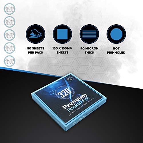 320° Premium Hookah Shisha Stanniol – Isoliert dicke vorgeschnittene Blätter – 50 Blätter – 40 Mikron feist Qua diesen Isoliert dicken vorgeschnittenen Blättern müssen Sie Ihren Shisha / Shisha-Kopf nie doppelt folieren. Perfekte Größe, um Folienverlust benachbart Computerprogramm großer Rollen zu unterbinden!