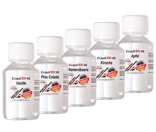 SmokerFuchs 5 x 100 ml E Liquids Vanille PinaCola Wald-Ananas Kirsche Apfel – shisha E-liquid statt dessen E Zigaretten Nikotin-Frei