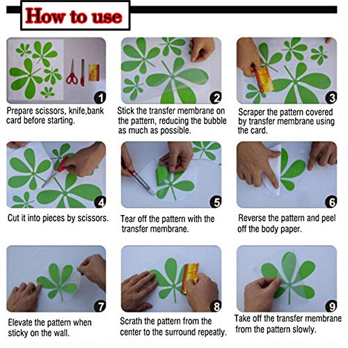 Sie können Wandtattoos auf nahezu jede glatte Schein schälen und kleben, einschließlich Wände, Decken, Türen, Fenster, Spiegel, Möbel, Innenwände oder Fenster von Haus, Bad, Büro, Wohnheim oder Geschäft