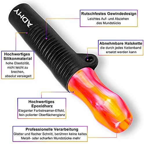 【Beste Erfahrung】Das Harzmundstück ist mit einer hochelastischen Silikonhülse ausgestattet, die mit allen auf dem Markt. Darüber hinaus wendet das Mundstück eine präzise Verarbeitungsmethode an, und die Oberfläche fühlt sich angenehm an, und es ist nicht erforderlich, bei jeder Verwendung kaltes Metall- und scharfes Mundstück zu berühren.