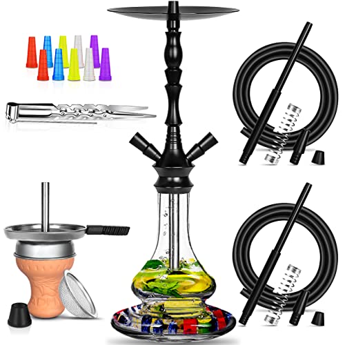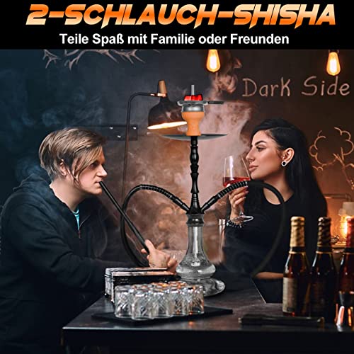 ADMY Shisha Set, 62cm Hookah Aluminium 2 Anschlüsse 2 Schläuche | Wasserpfeife Set Komplett mit Zubehör Edelstahl…