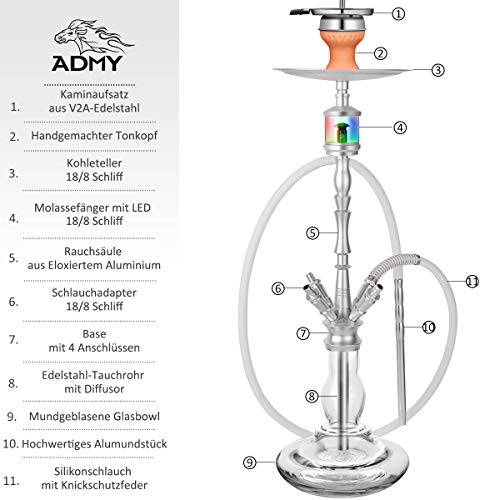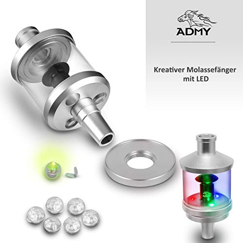 [Hochwertig&Elegant]: ADMY Shisha Set besteht aus eloxiertem Aluminium, und ist dadurch robust, langlebig, rost- und kalkfrei. Dank dieses hochwertigen Materials und der starken Glasbowl wirkt die Wasserpfeife sehr illuster und schön. Mit dem mit LED ausgestatteten Molassefänger können Sie beim Rauchen das doppelte Vergnügen von Geruch und Gesichtssinn genießen!