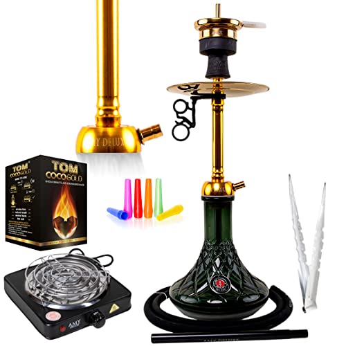 Zum Lieferumfang gehört 1 Kohleanzünder (1000w) mit Kohlegitter, 1kg Tom Cococha Gold Naturkohle, Kohlezange und Hygienemundstücke