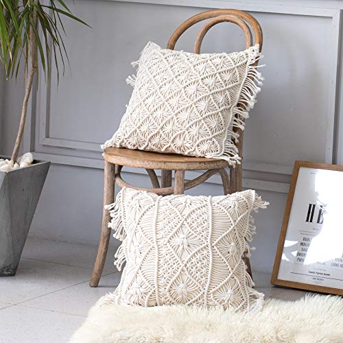 Amagabeli 2 stück Makramee Kissenbezug 45×45 cm Boho Deko Kissenhülle Weicher Dekorative für Sofa Kissen Lendenkissen…