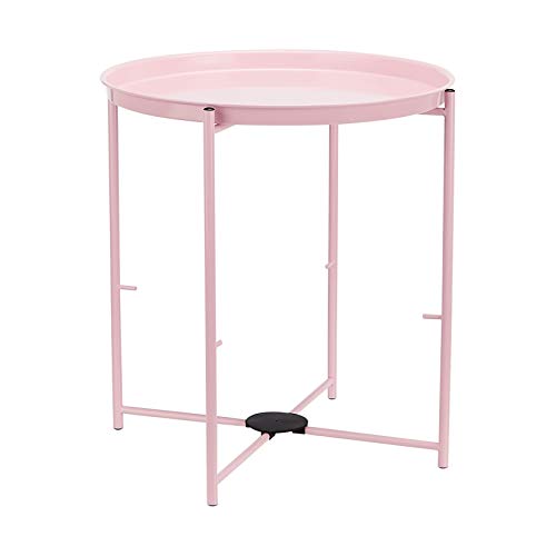 Amazon Basics – Beistelltisch, rund, mit Aufbewahrungslösung, Altrosa mit graumeliertem Stoff