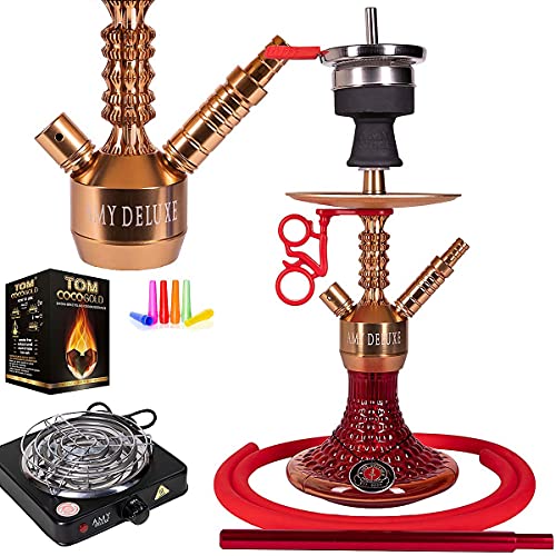 Amy 072.03 Antique Berry S, kompakte Aluminium-Wasserpfeife mit Klickverschluss im Premium Bundle, Gesamthöhe ca. 44 cm