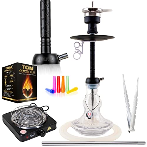 Amy 122.02 Alu Flirt S, Aluminium-Wasserpfeife mit Steck-Verschluss und Closed Chamber im Premium Bundle, Gesamthöhe ca. 60 cm