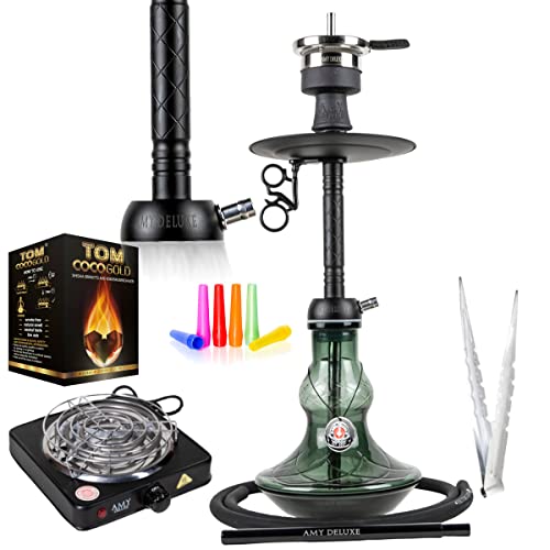 Amy 122.02 Alu Flirt S, Aluminium-Wasserpfeife mit Steck-Verschluss und Closed Chamber im Premium Bundle, Gesamthöhe ca. 60 cm