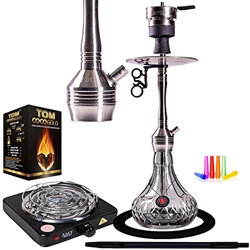 Amy SS29.02 Xpress Fame S, elegante Edelstahl-Wasserpfeife mit 18/8er Schliff und Closed Chamber-System im Premium Bundle, Gesamthöhe ca. 61 cm