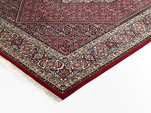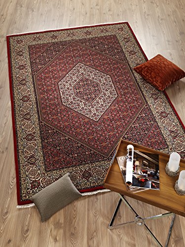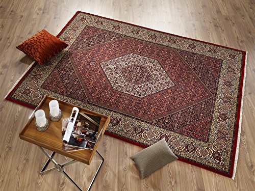 Der ANARAM BIDJAR klassische Teppichtradition und zeitlose Schönheit. Dieser in Indien allesamt 100% Schurwolle handgeknüpfte Qualitätsteppich fasziniert durch sein ebenso fließend-schlichtes wie unabänderlich modernes Design. Die opulente Borte umschließt ein prächtiges Innenfeld, das mit oder ohne Medallion erhältlich ist. Rauten- und Blättermuster in harmonischer Bearbeitung machen diesen Orientteppich zu einem Kunstwerk der Knüpfkunst.