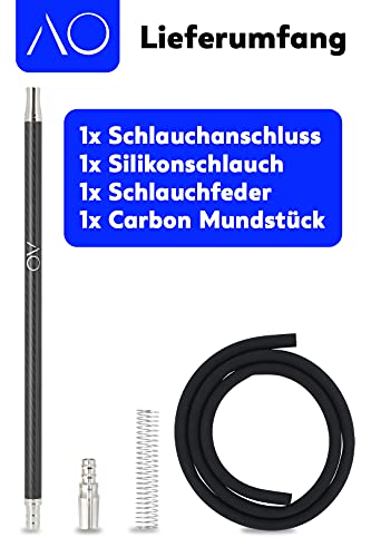 ✓ PERFEKTE KOMPOSITION – Das AO Schlauchset Carbon enthält einen hochwertigen Soft-Touch Schlauch, ein geniales Carbon Mundstück sowie einen Schlauchanschluss mit 18/8 Schliff und eine Schlauchfeder.