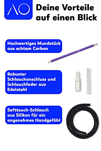 ✓ PERFEKTE KOMPOSITION – Das AO Schlauchset Carbon enthält einen hochwertigen Soft-Touch Schlauch, ein geniales Carbon Mundstück sowie einen Schlauchanschluss und eine Schlauchfeder. Dadurch ist dieses Package das voraussichtlich beste Schlauchset der Welt.
