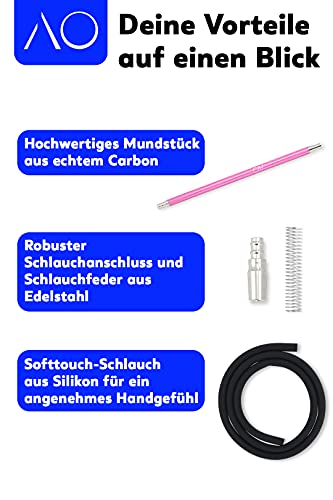✓ PERFEKTE KOMPOSITION – Das AO Schlauchset Carbon enthält einen hochwertigen Soft-Touch Schlauch, ein geniales Carbon Mundstück sowie einen Schlauchanschluss und eine Schlauchfeder. Dann ist dieses Package das vermutlich beste Schlauchset der Welt.