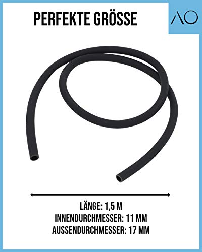 ✅PERFEKTE GRÖSSE: Mit einer Länge von 1,5 m, einem Innendurchmesser von ca. 11 mm sowie einem Außendurchmesser von ca. 17 mm ist unser AO Silikonschlauch dein ideales Shisha Zubehör