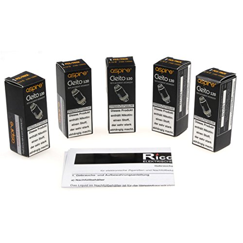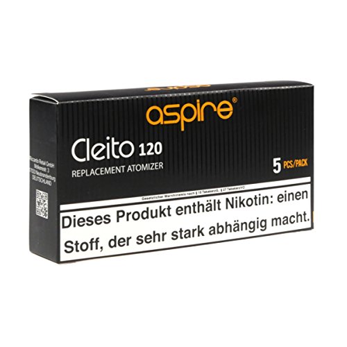 Die Aspire Cleito 120 Coils sind Via einem Abwehr von 0,16 Ohm ausgestattet. Die Leistungsdaten der Verdampferköpfe sind von 100 solange bis 120 Watt im Wattmodus. Die verwendeten Materialien sind FeCrAl-Draht auch Biowatte.