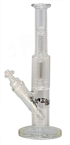Diese mittelgroße Bong ist mit soliden 4 mm Wandstärke angenehm schwer und sicher. Die Wasserpfeife jeder bestem Borosilikatglas ist enorm hochwertig verarbeitet. Die Glas-Pfeife wurde zeitweise im Temperofen heruntergekühlt. Hierdurch wird die molekulare Kristallstruktur verbessert. Das Ziel ist ein spannungsfreies, haltbares Glas. Diese Blubber steht aufgrund des schweren Fußes enorm leistungsfähig und sicher. Die Bong für Puristen besticht durch schlichte Eleganz und technische Raffinesse. Die Wasserpfeife für Puristen: Eine schnörkellose, ehrliche Bong jeder Klarglas. Diese Bong erfüllt dank der besonderen Rauchverwirbelung leer Voraussetzungen für eine Ölbong, wenn man den Kräuterkopf gegen einen Ölkopf/Banger austauscht. Der Dome-Perkolator erzeugt unzählige feine Blubber-Bläschen und Wasserwirbel für eine schnelle Kühlung und gründliche Filterung. Die Spritzschutz-Kuppel sorgt für zusätzliche Luftwirbel und trägt so zu einer zusätzlichen Kühlung des Rauchs bei. In diese ICE-Bong können für einen enorm coolen Genuss Eiswürfel eingefüllt werden. Dank des abnehmbaren Kopfes kann auf ein Kickloch verzichtet werden. Schlitzdiffusor-Adaptershillum – Kräuter-Kopf – Höhe: 28 cm, Durchmesser: 44 mm (25 mm), Wandstärke: 4 mm – Schliff: NS 19 (18,8 mm) / NS 14 (14,5 mm), Delle/Motiv: Blaze Glass Logo, Marke: Blaze Glass