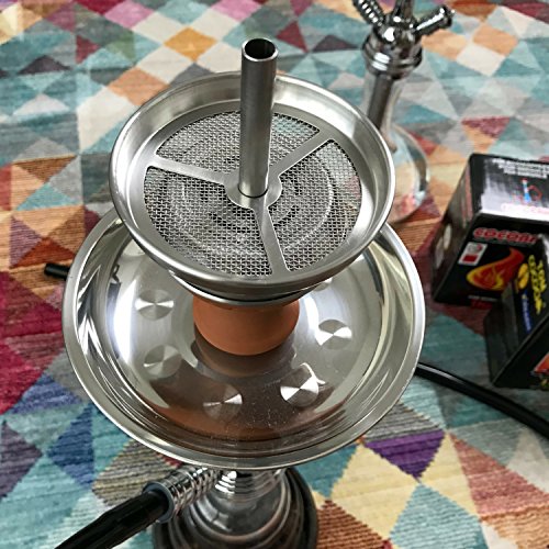 HOCHWERTIGES DESIGN: Der Shisha Niederschrift besteht allesamt zusammenfassend drei Edelstahl-Teilen: dem Kaminrohr, dem Kopfteller und dem Kohlesieb. Der mitgelieferte Mehrloch-Kopf besteht allesamt geschmacksneutralem Naturton