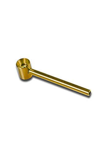 Handpfeife, Pur-Pfeife, Schraubpfeife, METALL-Pfeife teilbar Alu ist nahezu unverwüstlich: Feuchtigkeitsbeständig, auf keinen Fall rostend, UV- ansonsten lichtecht. Im Pfeifenkopf Ergehen sich Schlitze, die ein herkömmliches Sieb durchfallen, sodass diese Pfeife jeder frei ein zusätzliches Einlegesieb auskommt. Material: Alu Färbemittel: gold – Länge: 105 mm Bon: bong-discount