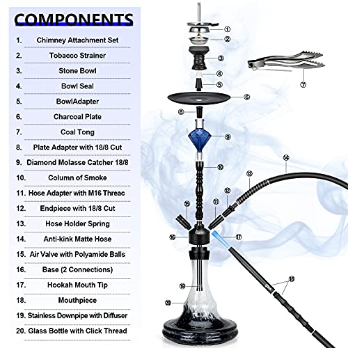 Cakety Shisha 80cm Hookah Premium Shisha Set 2 Anschlüssen Kaminaufsatz & Tabak Sieb & Tauchrohr & Diffusor, 18/8…