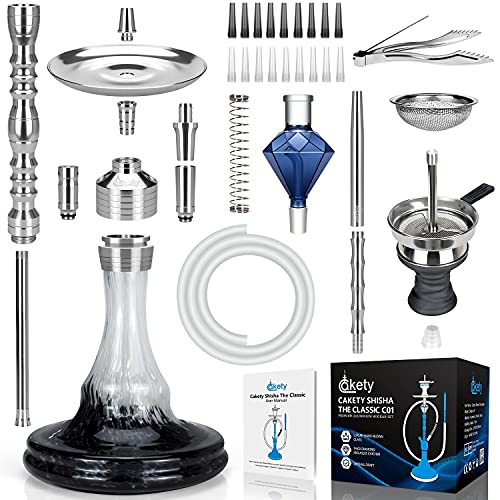 Cakety Shisha 80cm Hookah Premium Shisha Set 2 Anschlüssen Edelstahl Kopf Aufsatz & Tabak Sieb & Tauchrohr & Diffusor…