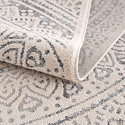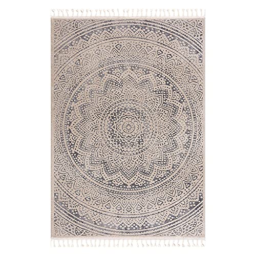 carpet city Teppich Wohnzimmer Grau – 120×170 cm – Ornamente Ethno-Stil – Kurzflor Teppiche Modern – Fransenteppich…