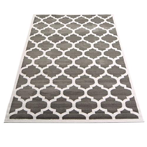 Carpeto Rugs Modern Teppich für Wohnzimmer Schlafzimmer Esszimmer – Marokkanisches Muster Kurzflorteppich – Grau 120 x…