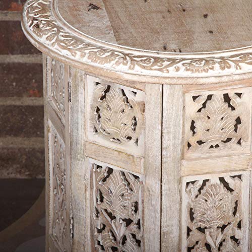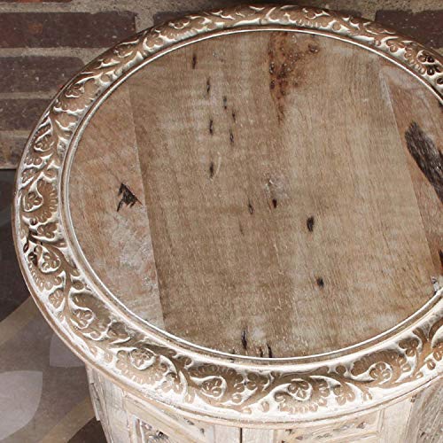 DIMENSION: Höhe ca. 46cm x Durchmesser ca. 46cm | MATERIAL: Echtholz Mango | FERTIGUNG: traditionelles Kunsthandwerk | FARBE: Shabby Chic weiss