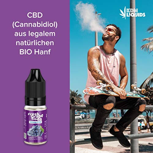 CBD Liquid 100-200-400 mg von KDM Liquids® Geschmack Fresh Grape Soda Aroma – 10ml Cannabis E-Liquid ohne Nikotin und…