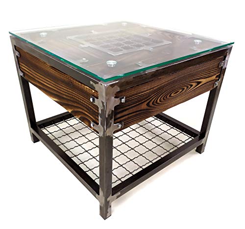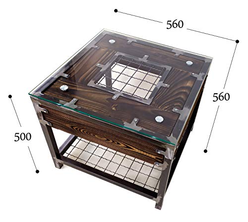 CHYRKA® Wohnzimmertisch Couchtisch Massivholz Metall Glastisch Holz Glas HALICZ Loft Handmade (56 x 56 cm H=50 cm, Natur…