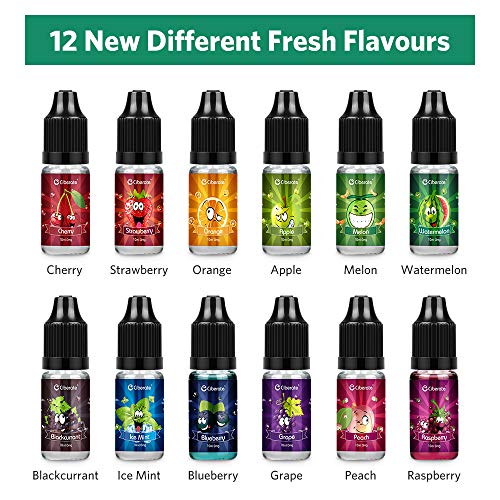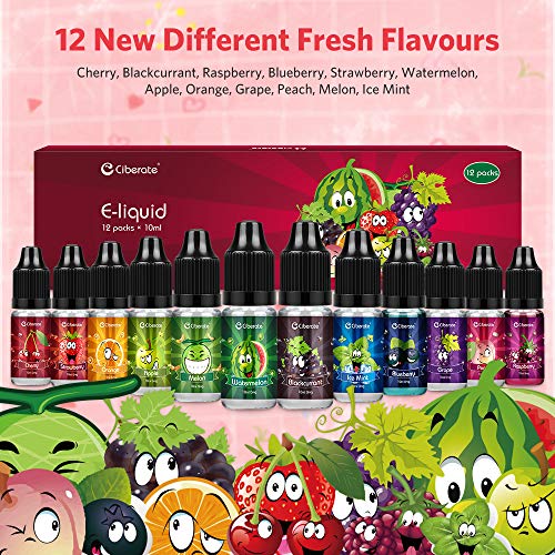 Ciberate 12 x 10ml Wassermelone Blaubeere Kirsche Himbeere Erdbeere Apfel Melone Schwarze Johannisbeere Eis Mint Orange Pfirsich Traube Liquid Set gibt Ihnen einen erfrischenden Geschmack!