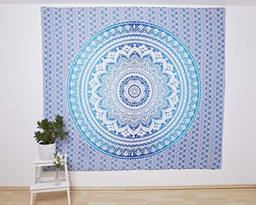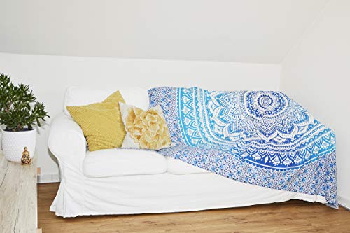 ✅ ??????????? ??????: Traditionelle orientalische Mandala Kunst – Blue Passion Bohemian Psychedelic Tuch im Ombré Design
