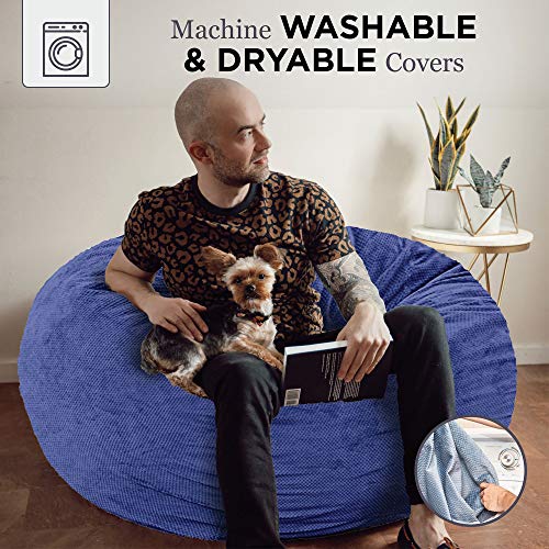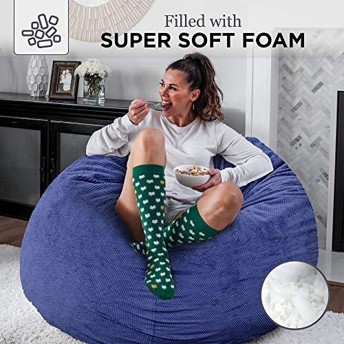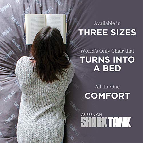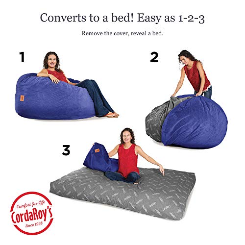 With CordaRoy’s Chenille Bean Bag Chair, a great night’s sleep is in the bag! As seen on Shark Tank, this is an ideal bean bag chair for adults and children alike. The fun seating and sleeping solution is perfect for your for your living room, guest room, kid’s room, basement, and more! The convertible chair changes from big bean bag chair to queen-size bean bag bed in no time! To turn the chair into a bed, simply unzip the safe-lock zipper, remove the cover, and flip inner cushion. Fold and slide the cushion into cover to convert back to the original bean bag shape. So easy, the kids can do it! CordaRoy’s Chenille Bean Bag Chair is made of the highest quality materials for your comfort. The super plush, dimpled microfiber cover is durable for a lifetime of use while remaining luxuriously soft. The navy color looks great with any decor style. When it is time for a refresh, simply toss the cover in the washer and dryer for a convenient clean. The fabric guaranteed to remain soft no matter how many times you wash! At CordaRoy’s, we use furniture-gradefoam that is extremely long lasting yet soft and supportive. This means the inside of your convertible chair is made with the highest quality foam that provides conforming comfort whether you are reading, watching a movie, sleeping, or just hanging out. Your guests will thank you for not making them sleep on an air mattress! CordaRoy’s Chenille Bean Bag Chair is compressed for convenient shipping straight to your doorstep. The convertible chair comes complete with (1) Queen Chair Cover and (1) Queen Bed Insert, everything you need to get comfortable right away. Bean bag chair seats 2 adults (48″ wide). Queen bed sleeps 2 adults (60″ x 80″ x 10″).