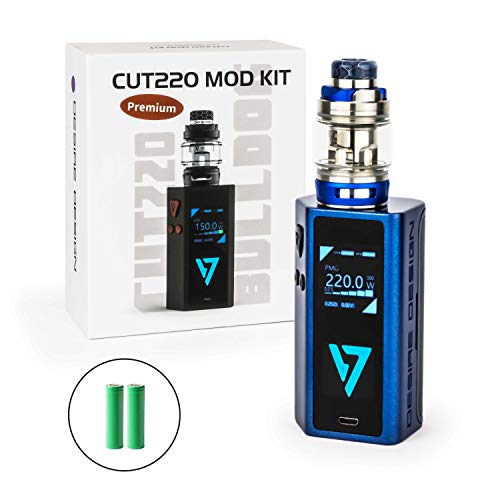 Desire Design hat mithilfe dem Cut 220 einen leistungsstarken Akkuträger entwickelt, welcher mithilfe 2 x 18650 Akkuzellen betrieben wird und eine max. Ausgangsleistung von 220 Watt besitzt. Der Cut 220 Akkuträger besitzt ein 1,3 Inch großes Farbdisplay, welches allesamt Information anzeigt. Der Cut 220 Akkuträger bietet den VW und einen TC Modus sowie aus Sicherheitsfunktionen. Der im Kit beiliegende Bulldog Verdampfer verfügt mit einen Durchmesser von 24,50 mm und bietet ein Füllvolumen von 4,3 ml. Ausgelegt ist der Bulldog Tank sondern direkte Lungenzüge und in Folge dessen sondern fortgeschrittene bzw. Dampfer, die mithilfe reichhaltig Dampf vermeiden können, gedacht. Der Bulldog Verdampfer lässt sich einfach von oben befüllen (Top Fill) und hat eine große Luftführung (Air Flow) welche sich komfortabel adjustieren lässt.