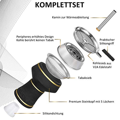 KOMPLETTSET: DFESKAH Steinkopf Set Inklusive 1 x Steinkopf, 1 x Tabak Sieb, 1 x Kaminaufsatz und 1 x Silikon Abdichtung. Kaufen Sie dieses Steinkopf set von DFESKAH erhällst Du was auch immer, was du zum Bauen eines perfekten Kopfes benötigst!