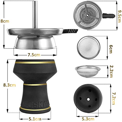 DFESKAH Shisha Kopf Set, Schwarz Steinkopf mit Kaminaufsatz & Tabak Sieb & Dichtung, passt für Jede Hookah