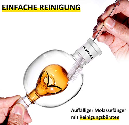 PRAKTISCH & MIT REINIGUNGSBÜRSTE:Shisha Molassefänger Diamond kann jeden Tropfen Melasse perfekt sammeln und die Rauchsäule und das Wasser in der Bowl sauber halten. Der Molassefänger wird mit einer 15 cm Schlauchbürste geliefert, deswegen können Sie nach Gebrauch problemlos jede Ecke mit sauberem Wasser reinigen.
