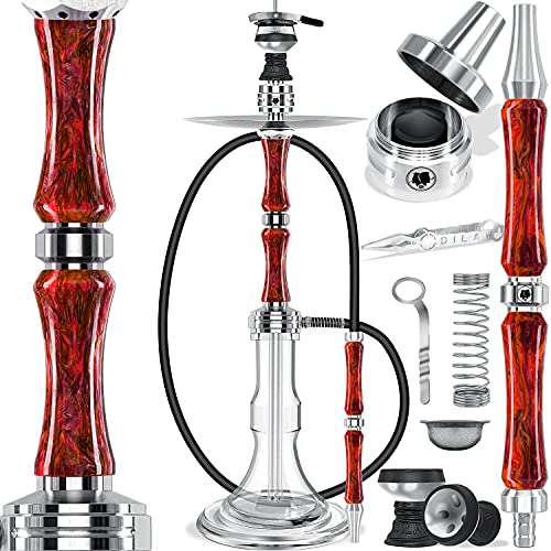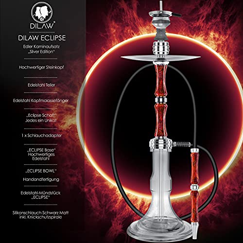 DILAW® Eclipse Shisha Set Edelstahl – Acryl Hookah 79cm Wasserpfeife Ausblassystem Kaminkopf Komplettset Molassefänger…