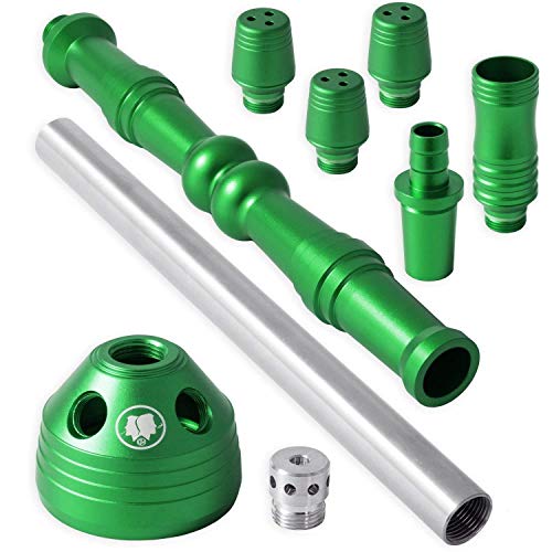 Die Säule besteht jeder eloxiertem Aluminium, und ist als Folge rost- und kalkfrei. Mit zusätzlichen Schlauchadaptern lässt sie sich problemlos auf bis zu 4 Schläuchen erweitern.Das Kaminkopf- Set inklusive Tabaksieb sorgt für effizienten Tabakverbrauch, da der Tabak dank der Hitzeverteilung gleichmäßig verdorben wird