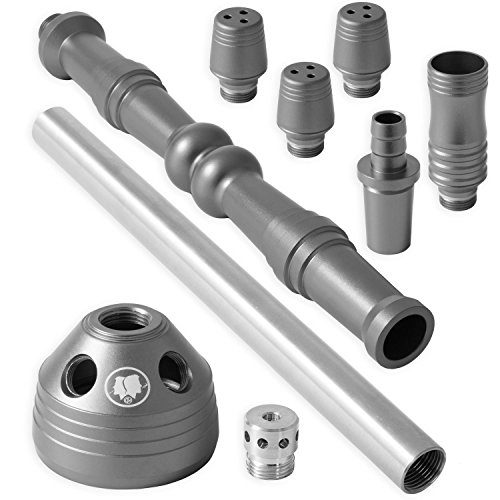 Die Säule besteht aus eloxiertem Aluminium, und ist dadurch rost- und kalkfrei. Dank des hochwertigen Materials ist die Shisha sehr robust, qualitativ hochwertig und hat zudem ein sehr edles Erscheinungsbild.