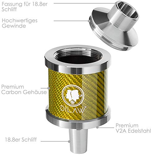 DILAW® Shisha DX1 Carbon Molassefänger Edelstahl Wasserpfeife, Vorkühler-Aufsatz für(Schliff 18/8) Zubehör Farbe Gold