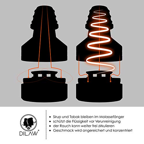 Molassefänger von DILAW verbindet Style und praktischen Nutzen! Keine Molasse mehr, die in eure Rauchsäule tropft, und ein Highlight an eurer Shisha Kopf.