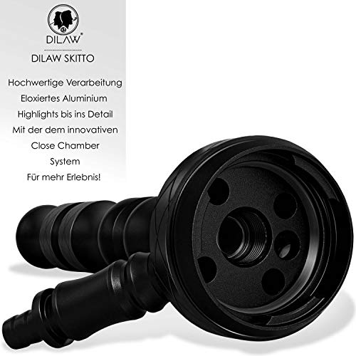 ????????????? ???????????: Die neue DILAW SKITTO Shisha aus eloxiertem Aluminium – wurde optisch sowie auch technisch weiterentwickelt und beinhaltet mehr Zubehör im Lieferumfang. Das visuelle Highlight der Wasserpfeife ist Das Ausblassystem , Molassefänger und die Bowl mit den farblichen Akzenten.