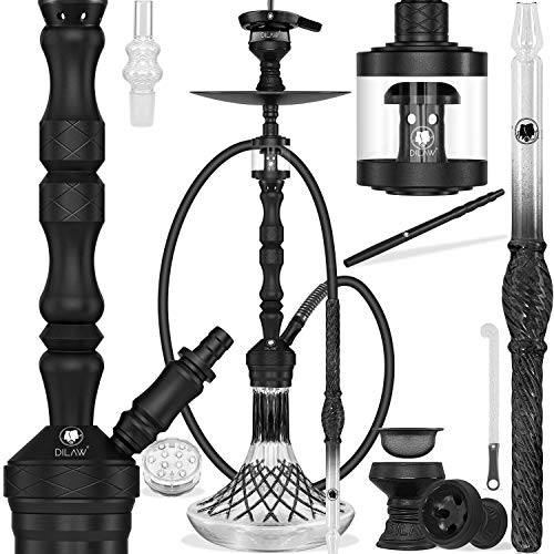 DILAW® SKITTO Shisha Set Hookah Aluminium Alu 75cm Wasserpfeife Kaminkopf Komplettset Molassefänger Silikonschlauch Alu…