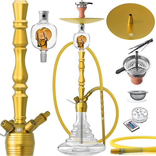 DILAW® Vatos Shisha Set Hookah 93cm Aluminium Alu + LED Licht | Wasserpfeife Kaminkopf Komplettset Molassefänger…