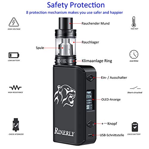 E Cigarette Shisha Zigarette Starterset,TC(Temperaturregelung)200W Mod Box mit 18650 Batterie 4000mAh Akku,Verdampfer…